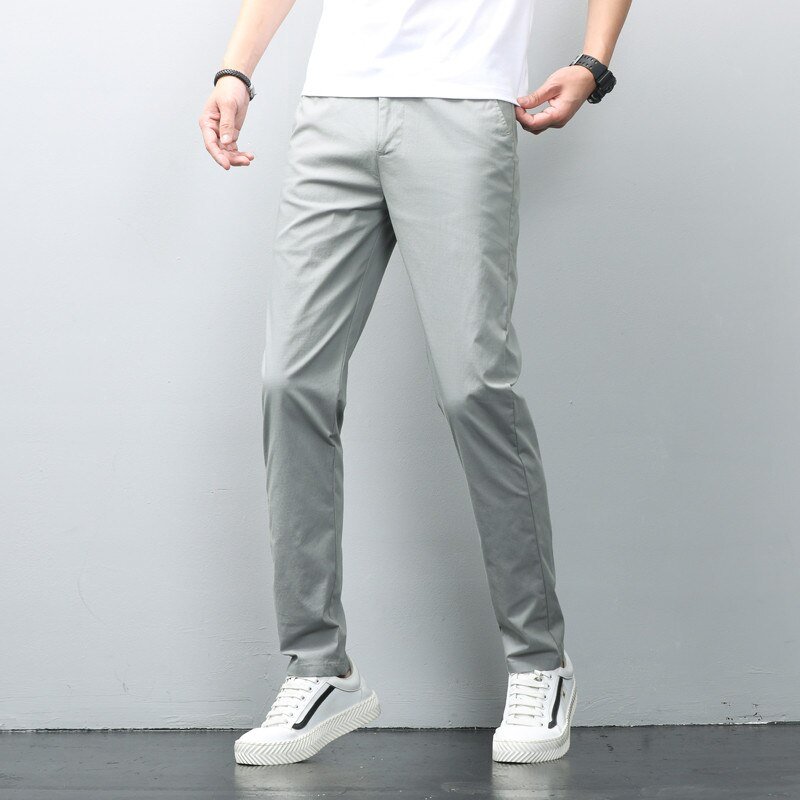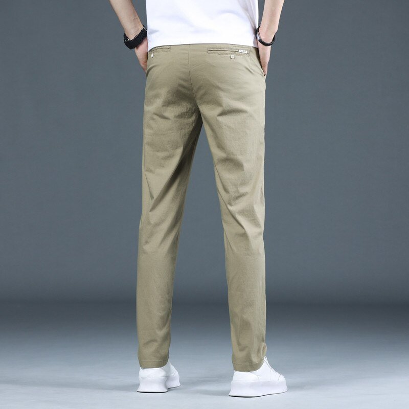 2022 Chino Pant Men Stretch Slim Classic Fit Summer Pants Thin Cotton Elastic Waist Korean Male Business Casual Light Breathable